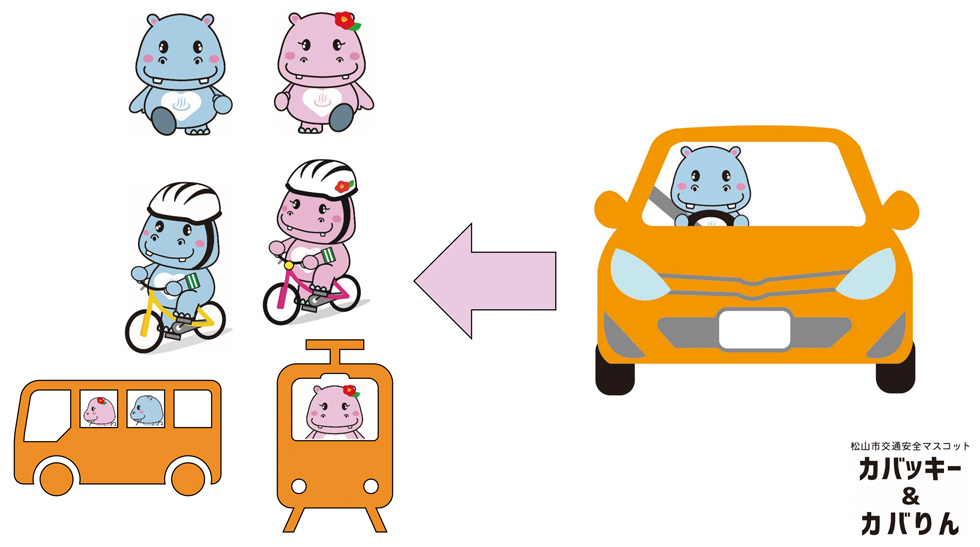 「エコ通勤」とは、バスや電車、自転車や徒歩など、環境負荷の小さい通勤方法に変えることで、周辺地域の通勤時間帯の渋滞緩和、地球温暖化防止、公共交通の利用者増による公共交通サービスの向上、健康増進、交通事故の減少や有効時間の活用などを推進する取組です。松山市は、「愛媛県ノーマイカー通勤デー」の参加事業者として、毎月第4金曜日をノーマイカー通勤デーと設定し、職員全体で過度の車利用から脱却を推進しています。 詳細はコチラから!